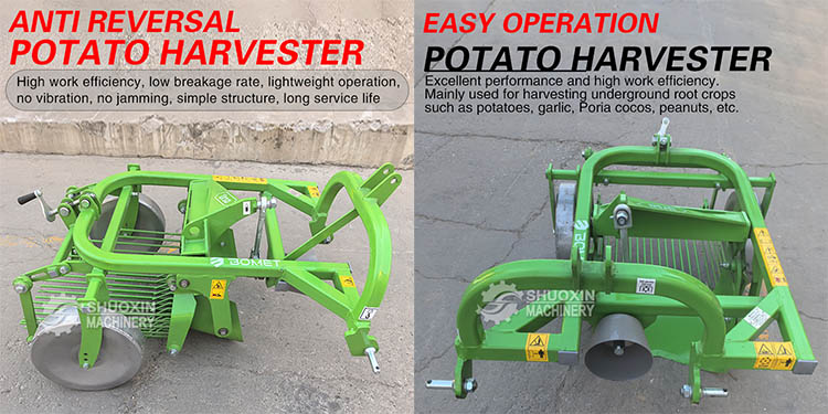 Srpski језикدستگاه های برداشت سیب زمینی نصب شده بر روی تراکتور تولید شده توسط Shuoxin® به طور خاص برای تراکتورهای کوچک فشرده / چمن طراحی شده اند. از یک تیغه گاوآهن حفاری ارتعاشی تشکیل شده است و عمق حفاری آن قابل تنظیم است. می تواند سیب زمینی و خاک را به یک صفحه ارتعاشی منتقل کند، در نتیجه سیب زمینی ها را از خاک جدا کند و در نهایت آنها را به طور یکنواخت در یک ردیف برش انباشته کند. اندازه آن نسبتاً کوچک است و این تجهیزات را میتوان در زمینهای کوچک (مانند زمینهای هموار و دامنههای تپه) مورد استفاده قرار داد و برای حفر سیبزمینی جدید مناسب است.